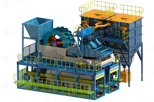 SX系列篩洗一體機結合了滾筒篩、輪斗洗砂機、分離器、脫水篩等設備于一身,使得一臺設備同時具備了篩分、水洗、脫水、回收等
